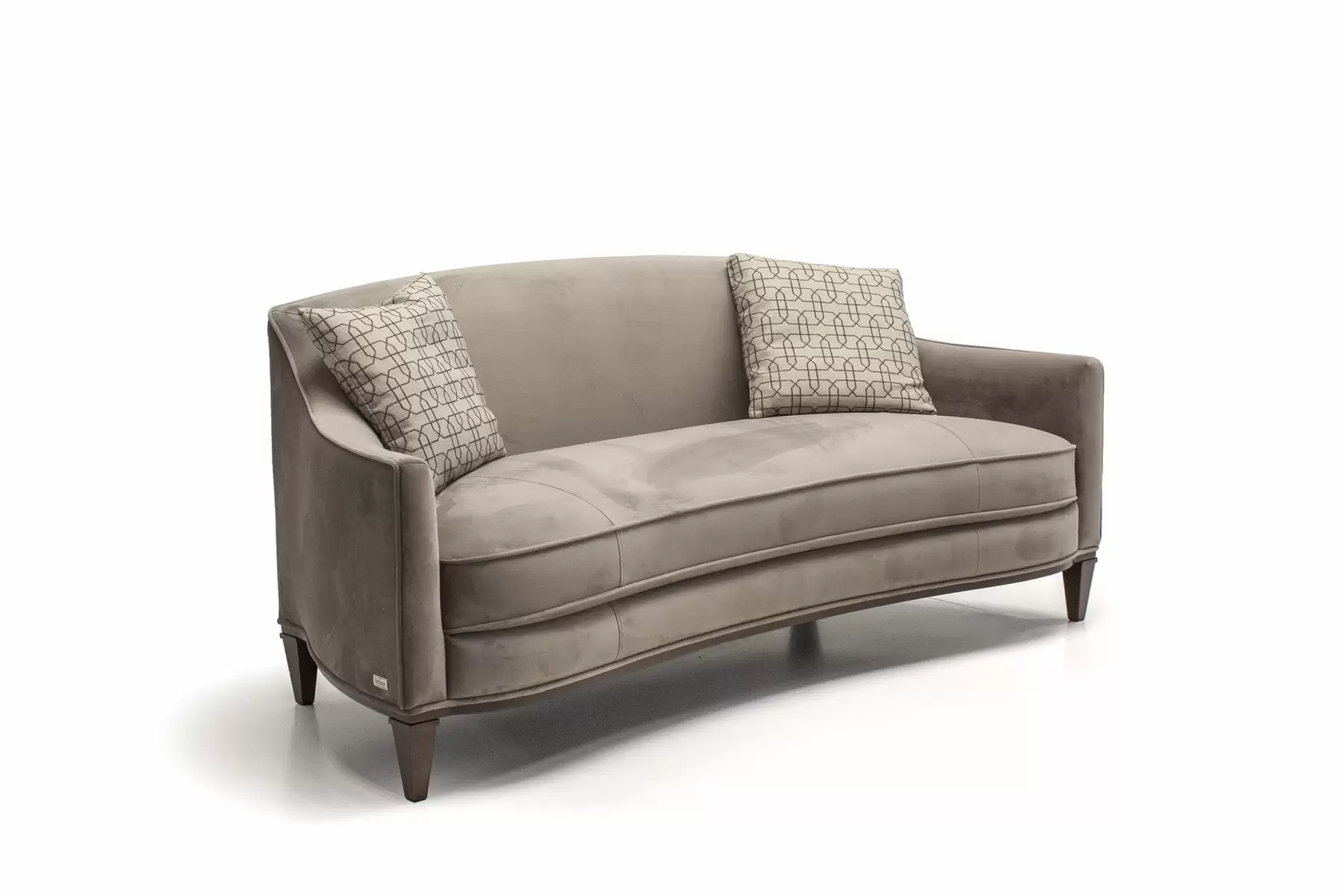 Изогнутые углы дивана контрастируют с плавными линиями, что позволяет создать индивидуальный характер мебели. Непревзойденная мягкость наполнителя из пера и пенополиуретана делает этот диван подходящим для отдыха наедине или в кругу друзей. Также очаровывают фигурные ножки из массива дерева, которые можно затонировать в соответствии с вашими пожеланиями. Есть возможность выбрать из множества вариантов обивки.
