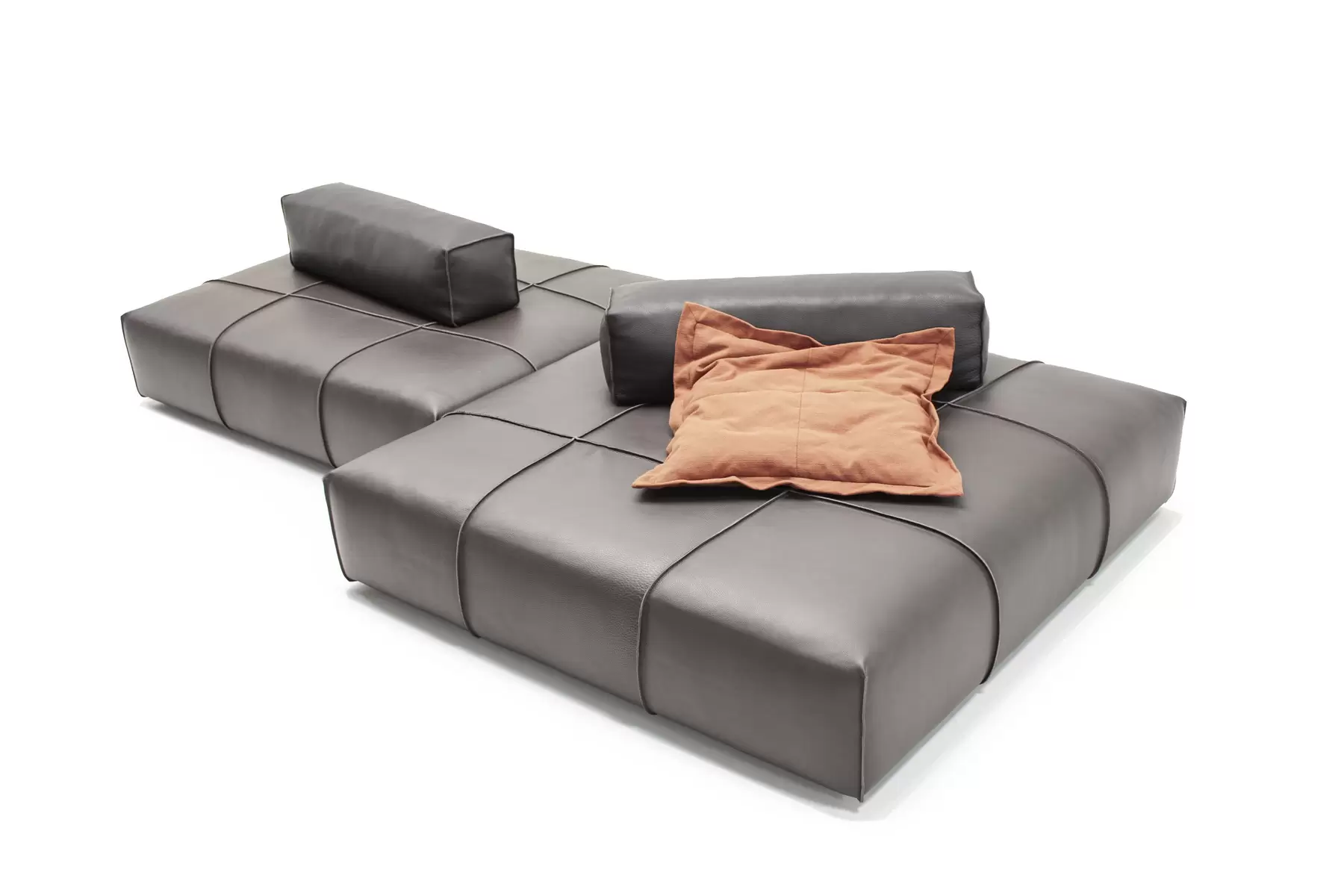 Конструкция дивана Raphael включает прямоугольные и квадратные модули различных размеров, которые можно использовать как отдельно, так и соединенными между собой для создания