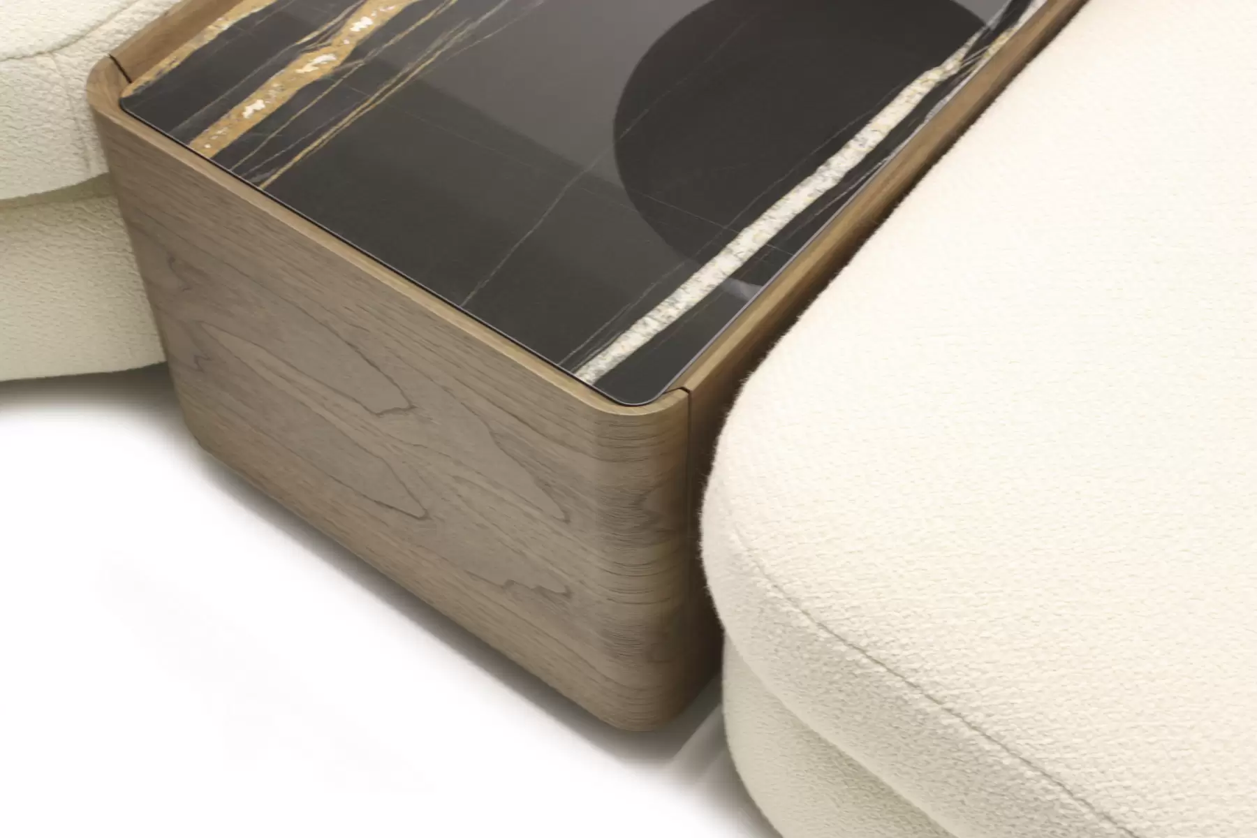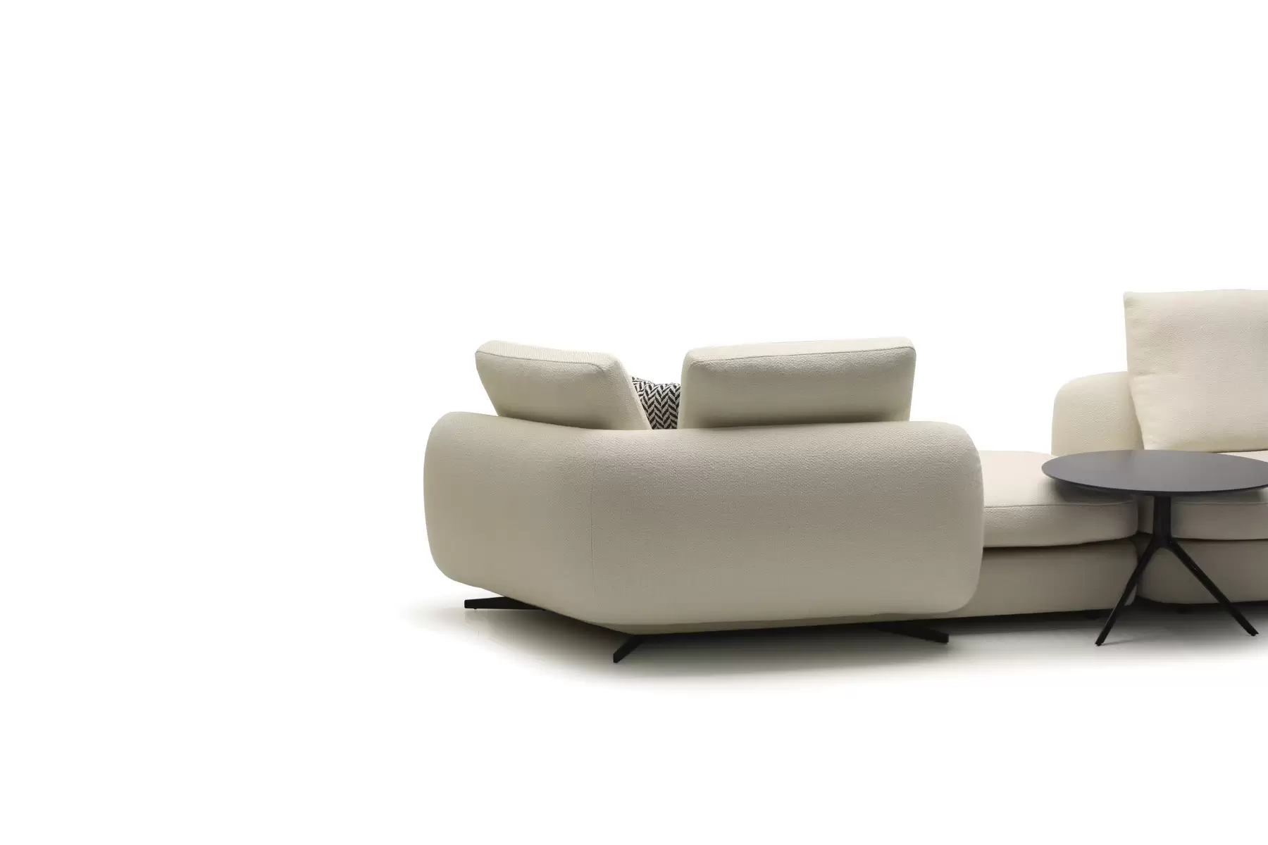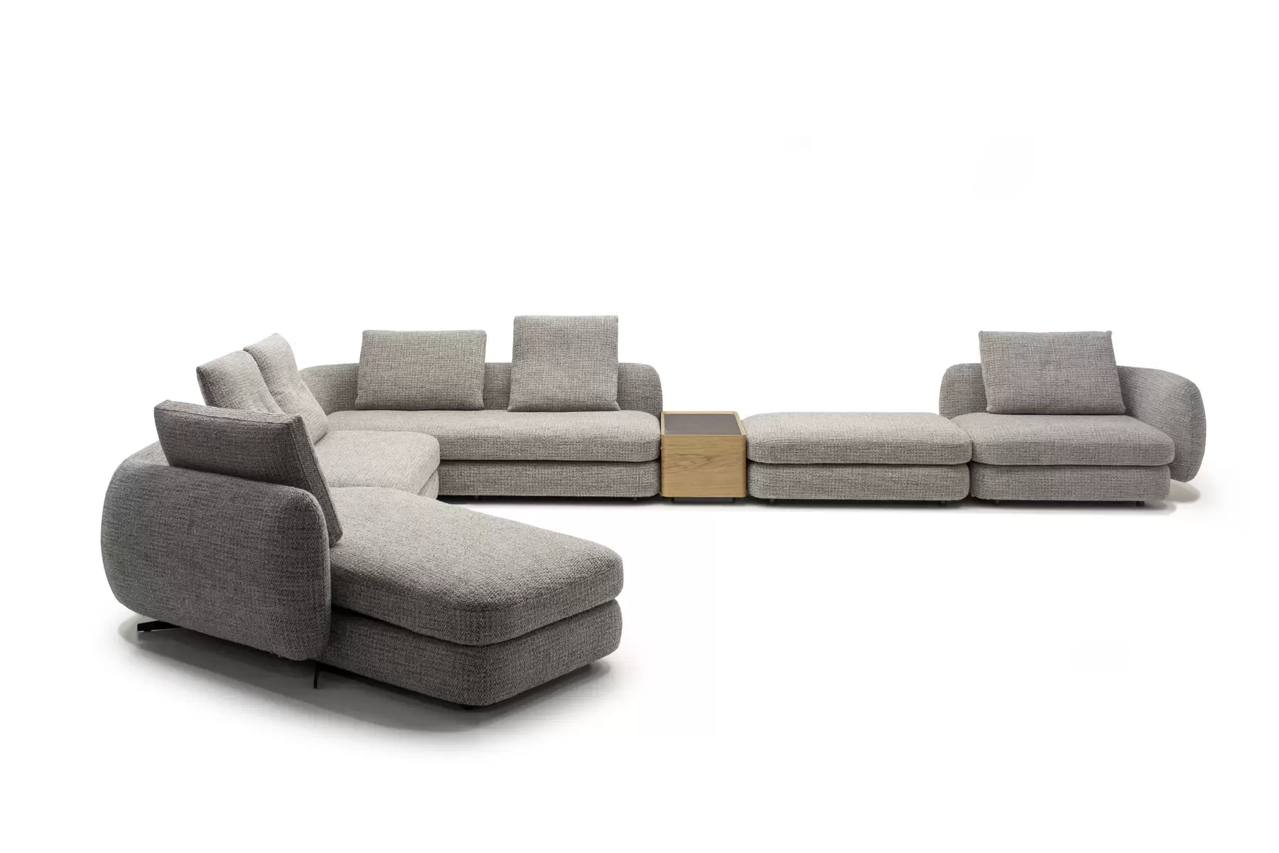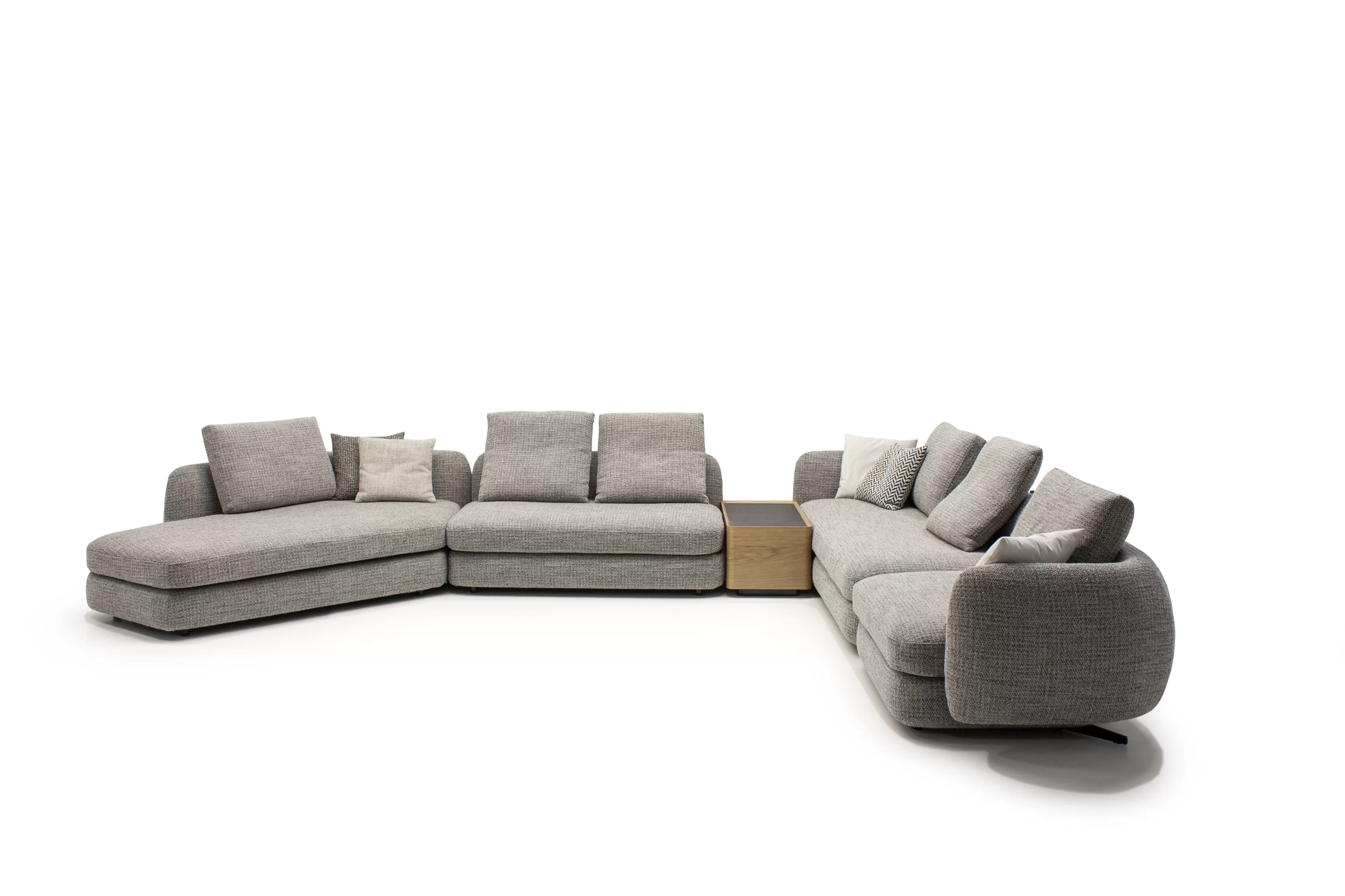 Форма сиденья сочетает трапеции и классические прямоугольники со скругленными деталями. Деликатная изысканность – это то, что позволяет ему принимать различные очертания и размеры, не утрачивая своей элегантности и функциональности. Модули дивана изысканных форм с разной глубиной очень комфортны и эргономичны.