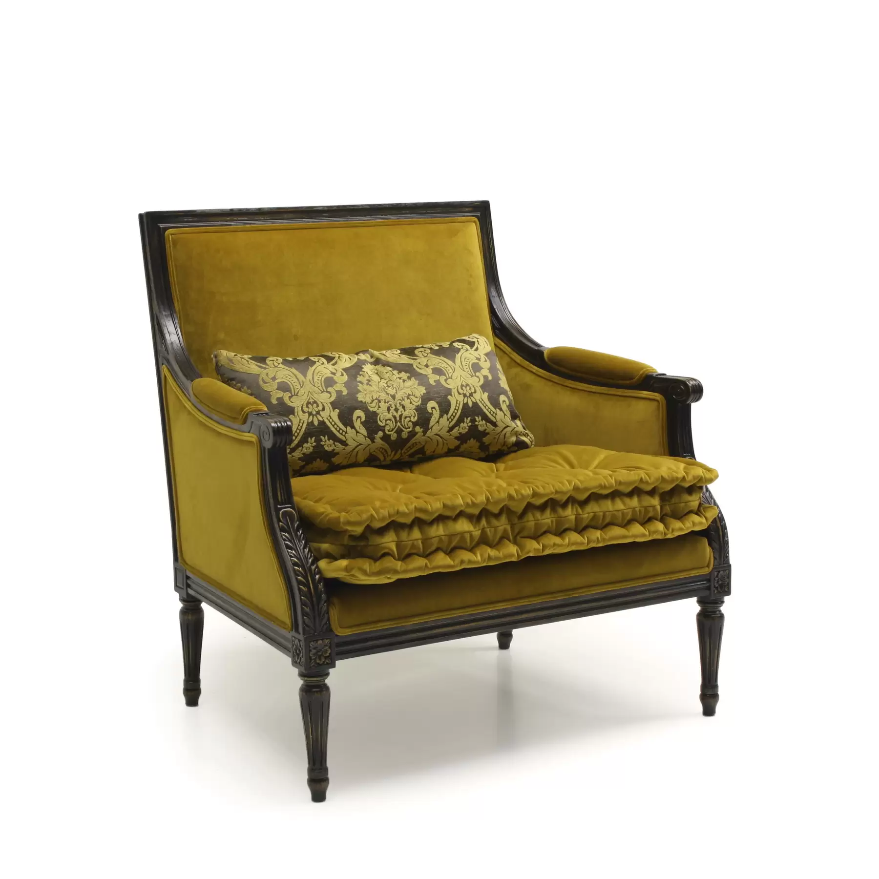 Такое понятие как «вечная классика» заключено в кресле Bolero, которое всерьез претендует на статус «фамильной ценности», которая будет переходить из поколения в поколение. Непревзойденный декоративный эффект специальной отделки деревянного каркаса еще более подчеркнуто изяществом резьбы, выполненной вручную. Мягкое и удобное сиденье гарантирует максимальный комфорт. Кресло Bolero дополнит и подчеркнет роскошный интерьер.