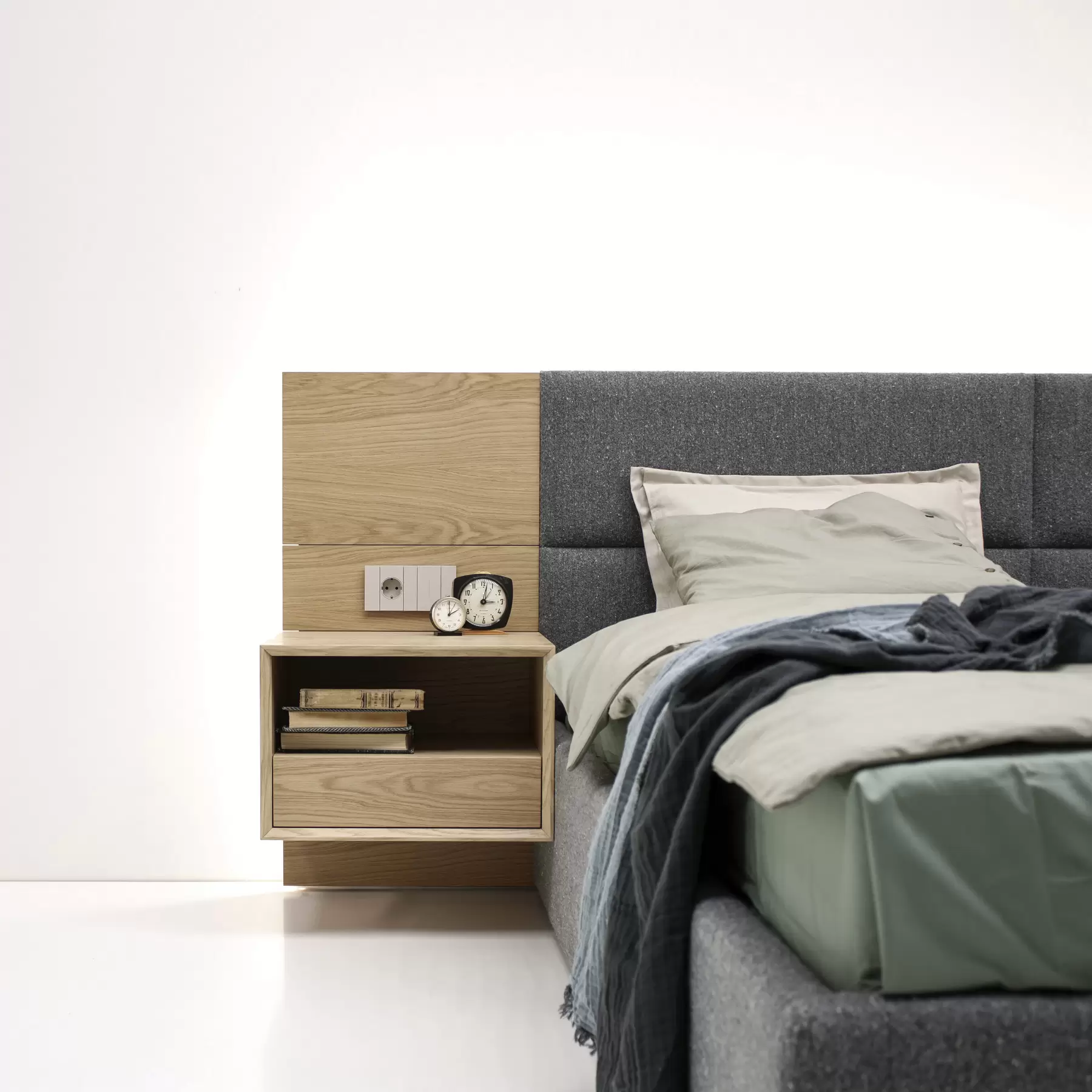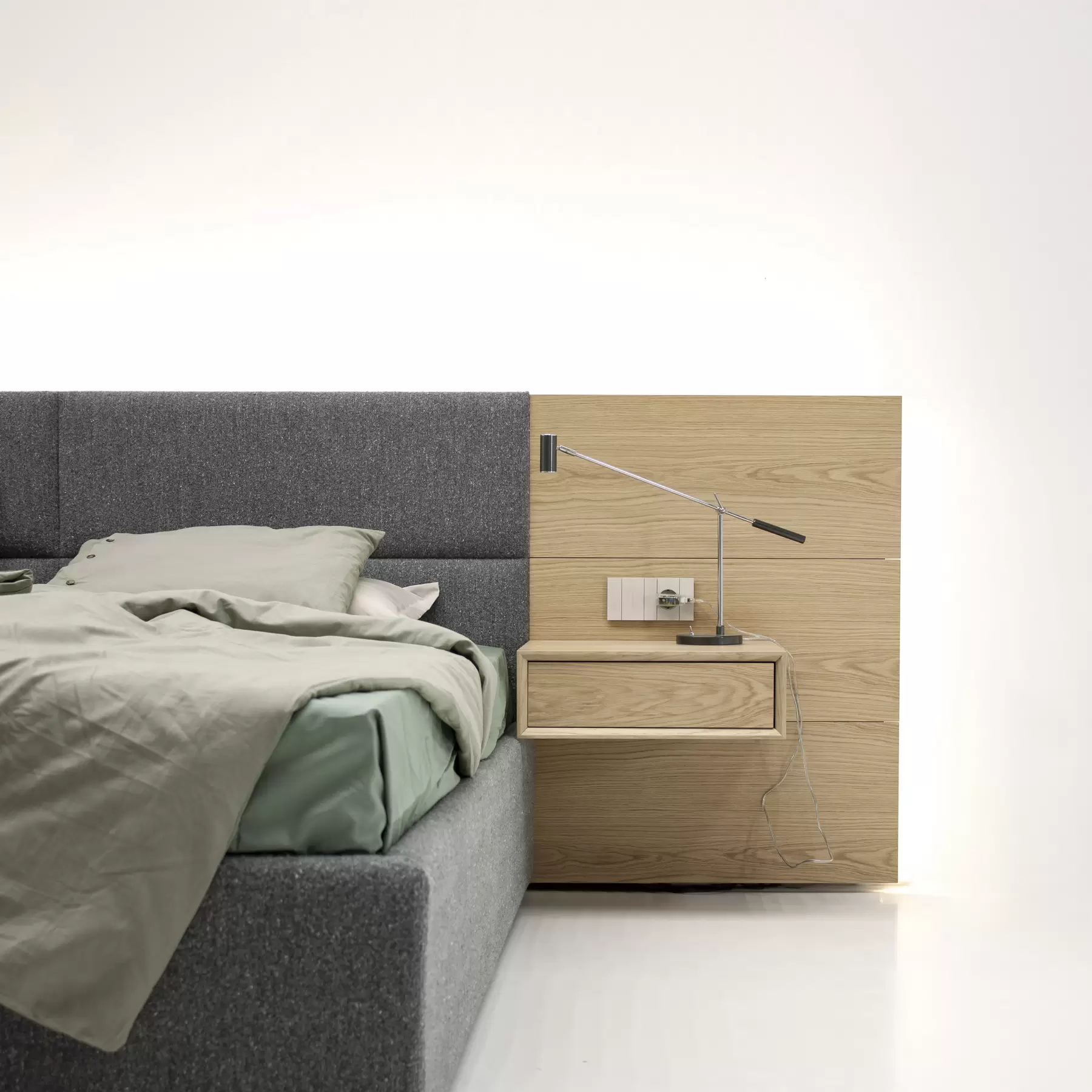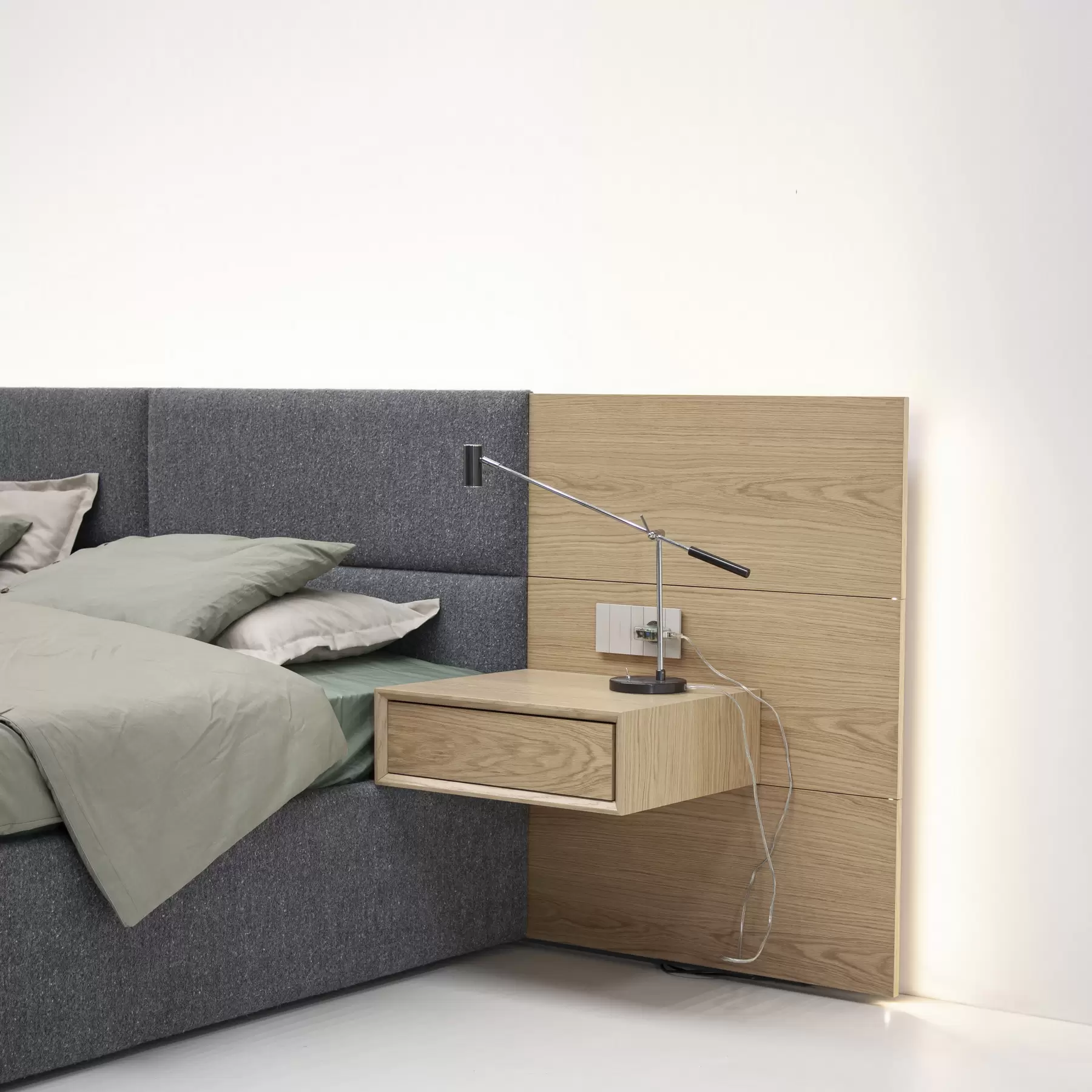 себе функциональность и индивидуальный стиль. Frame представляет собой модульную систему с настенным креплением изголовья, позволяющую создавать разнообразные композиции и
