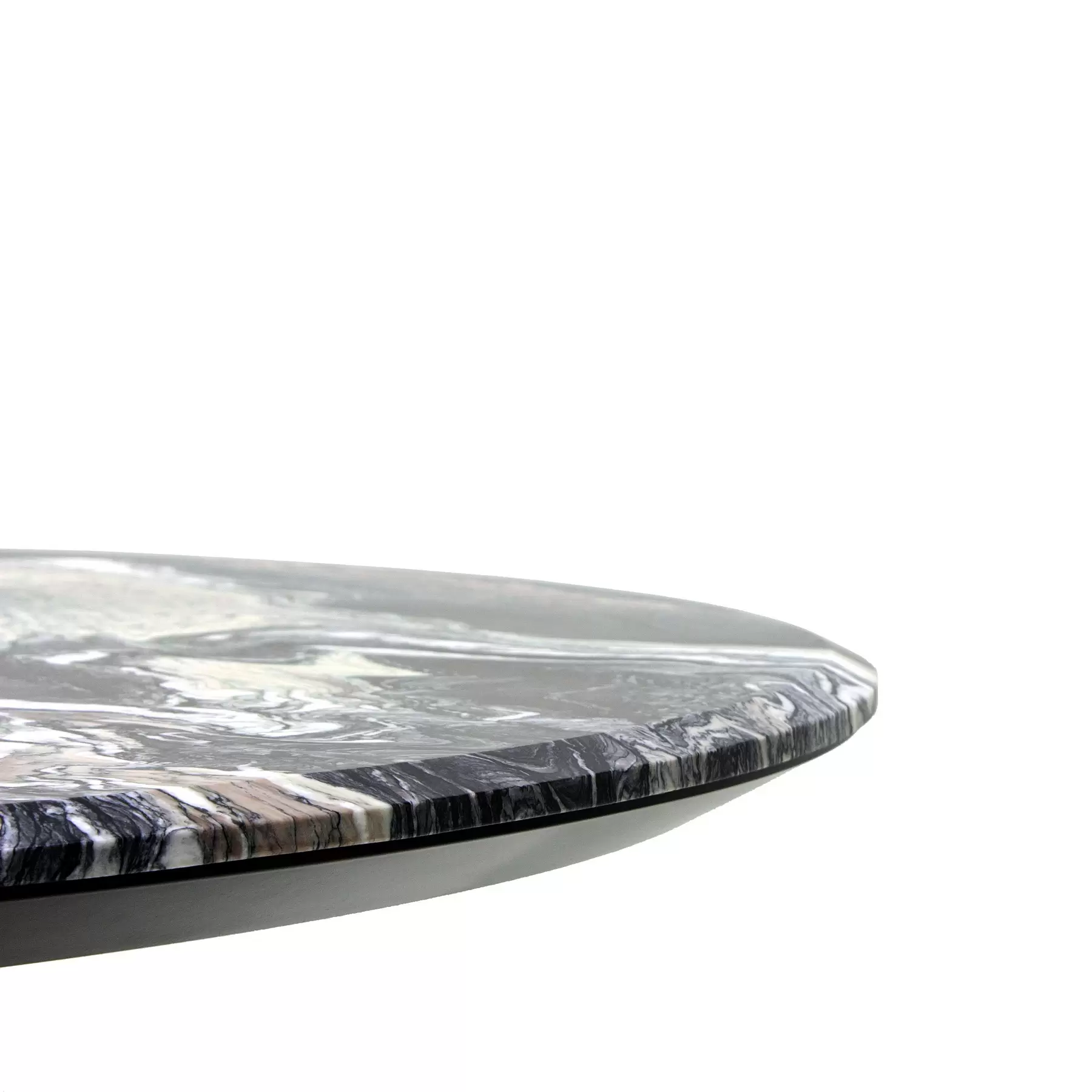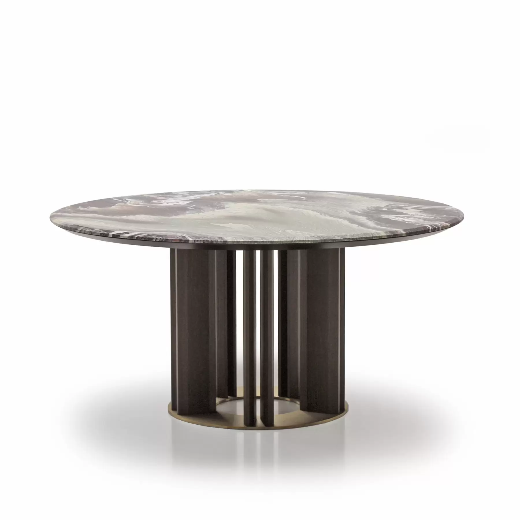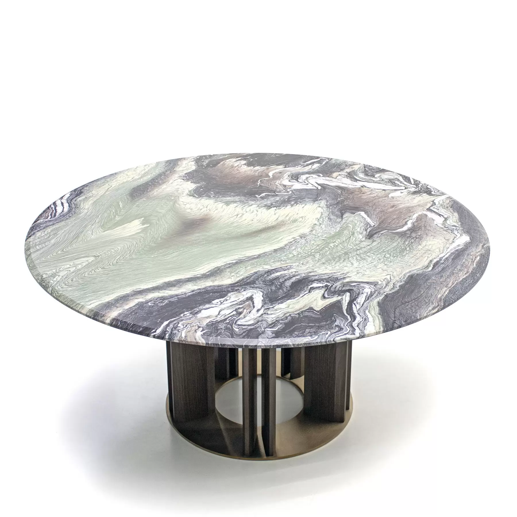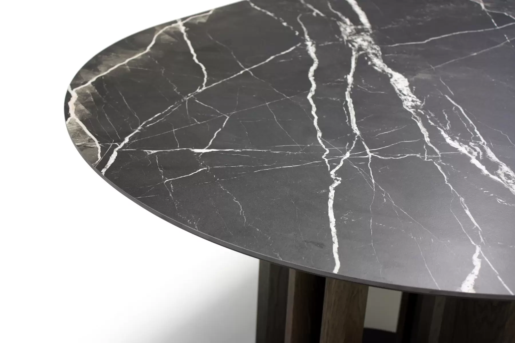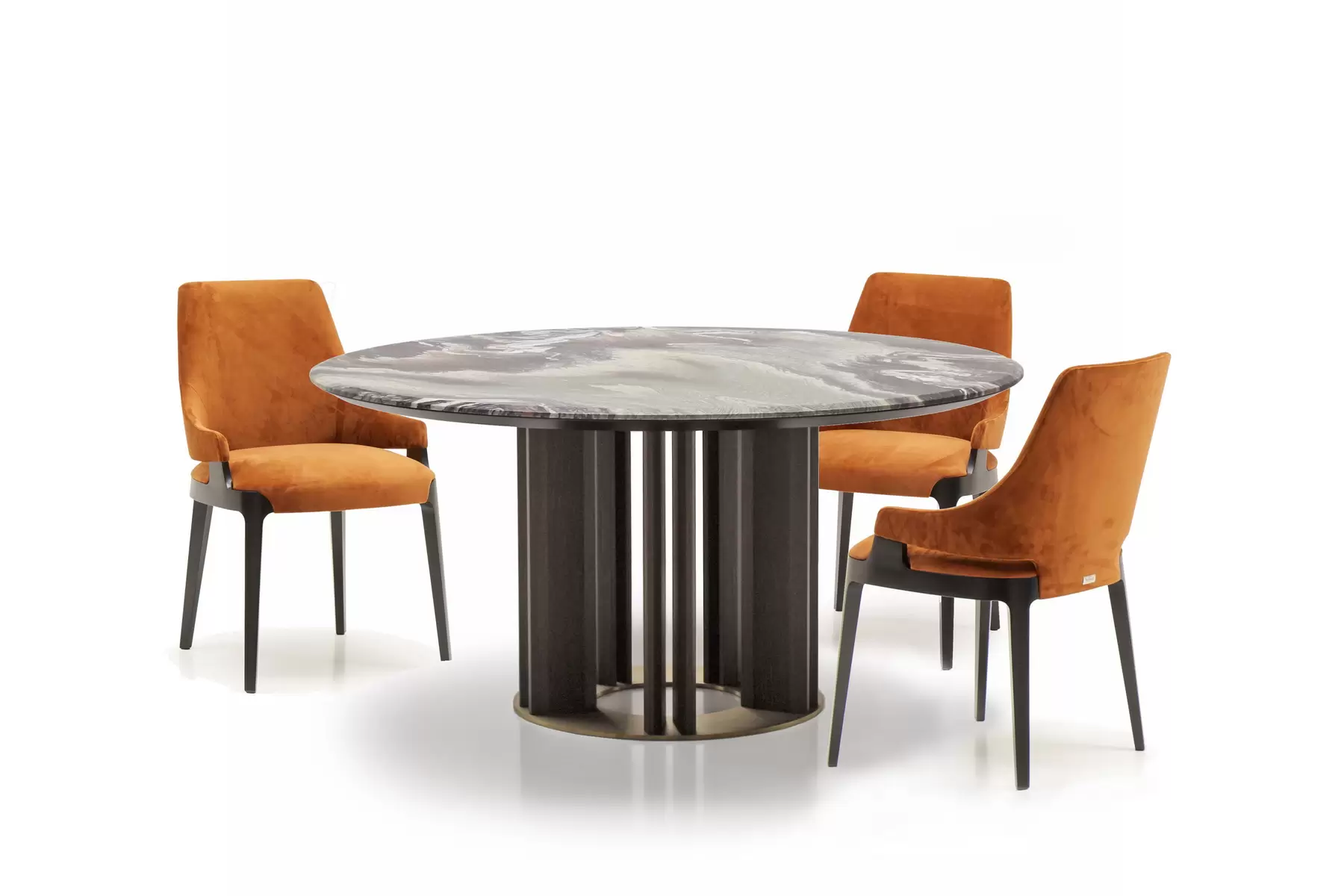 Tondo со своей идеальной геометрией позволяет удобно расположить максимальное количество гостей за столом. Центрально расположенная опора, декорированная деревянными “лопастями”, добавляет в дизайн архитектурности. Керамическая столешница смотрится лаконично и стильно. А дополняет композицию “ленивая Сьюзен” — практичный элемент, который обеспечивает сидящим за столом доступ ко всем блюдам, благодаря механизму вращения. Эта часть независима от основной конструкции и может использоваться в паре с другим столом.