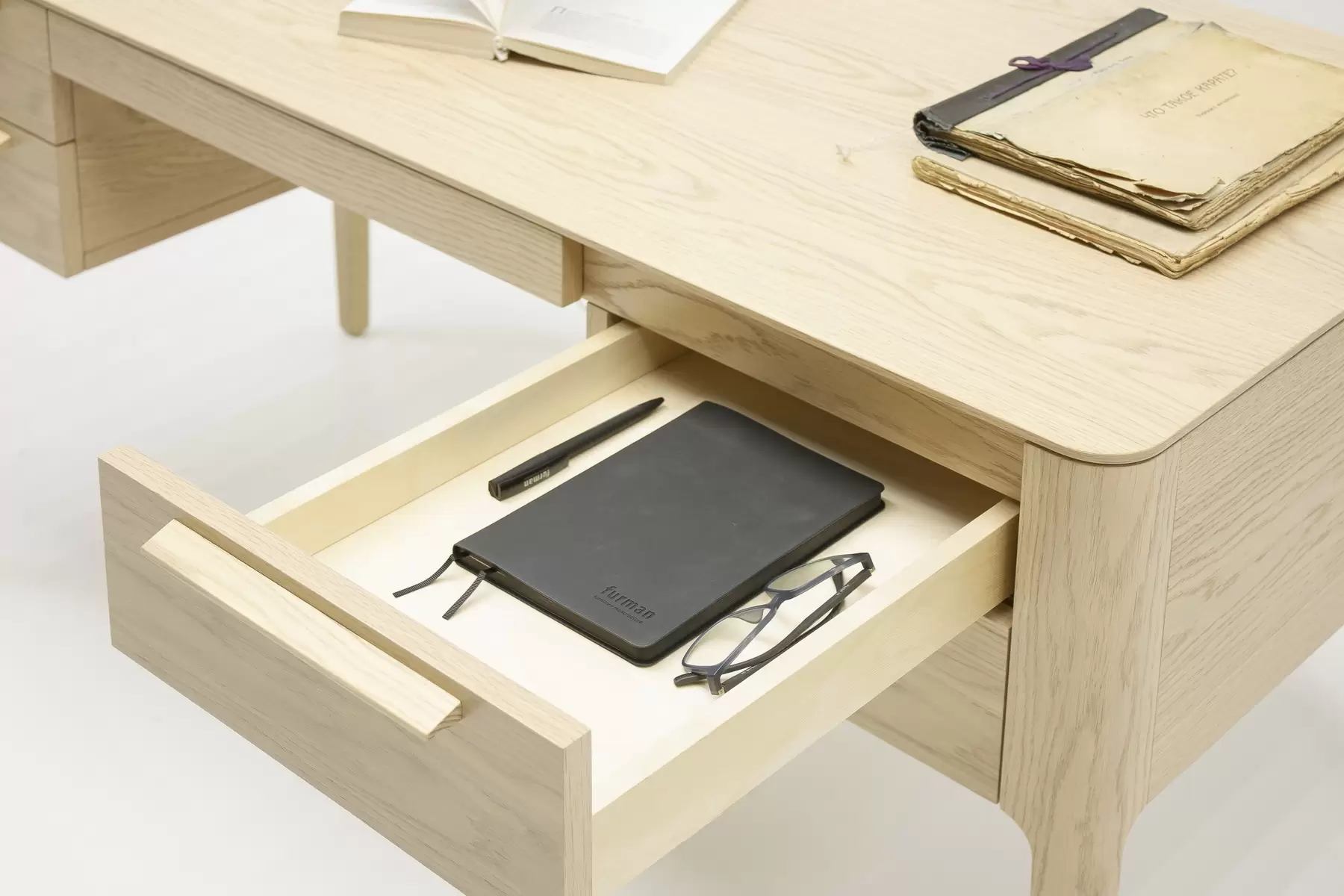 Отличительные особенности конструкции стола — изящные опоры и тщательно проработанные линии, создающие ощущение легкости и эстетической простоты. Бесшумная фурнитура позволяет